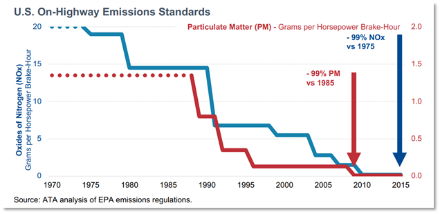 The trucking industry has made massive strides in reducing tailpipe emissions over the past 35 years thanks to innovation and achievable regulatory targets and timelines: